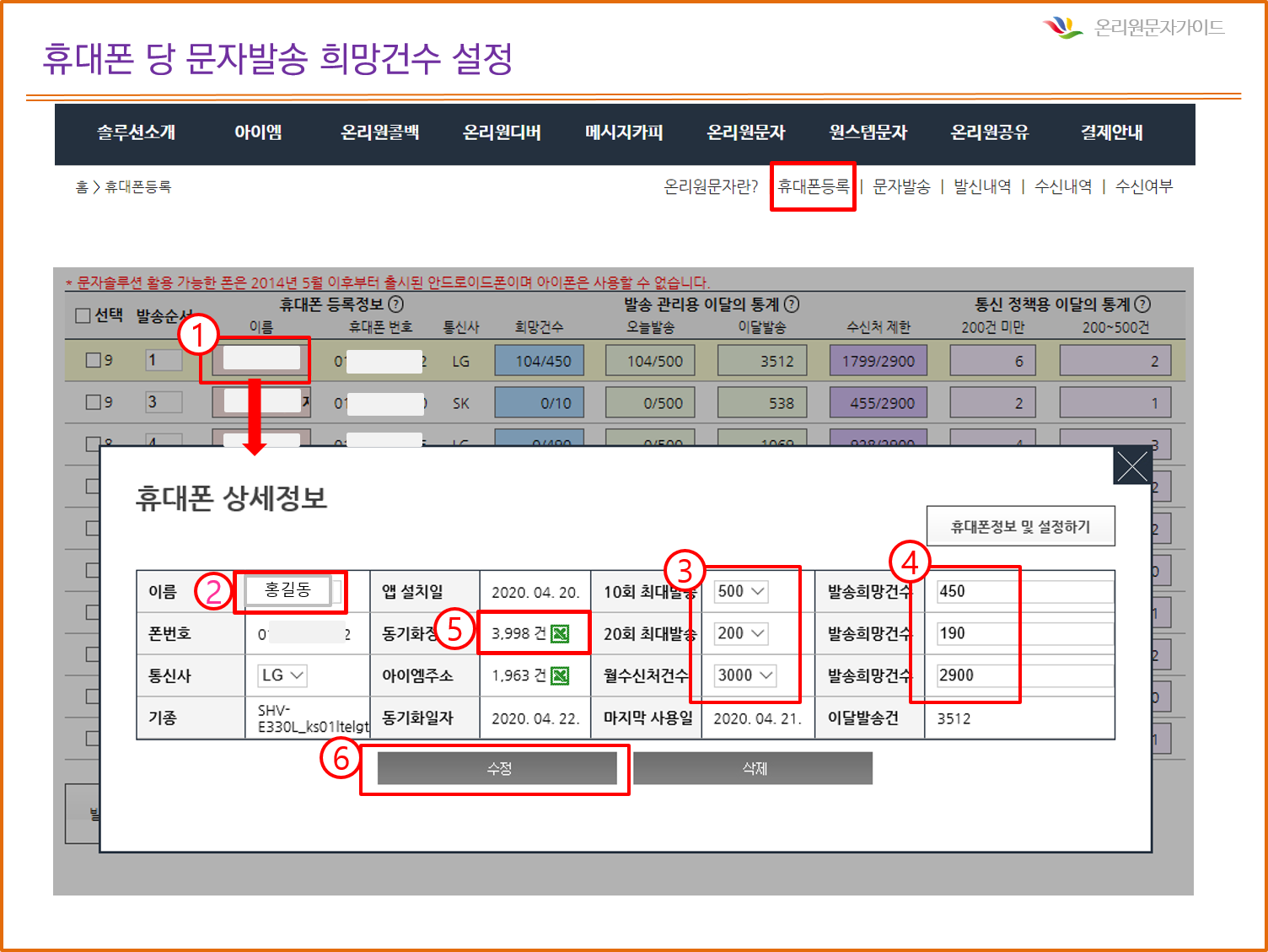 문자 [온리원문자] 발송건수 및 수신처수 직접 설정 2020-04-22 46481